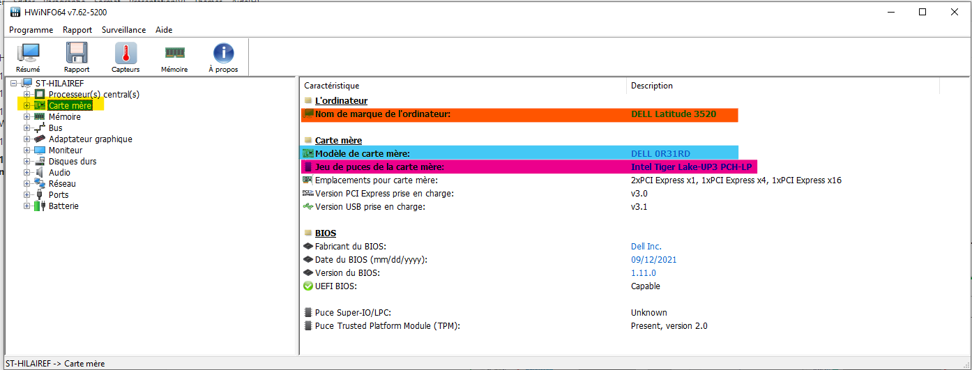 Pour être en mesure de détecter la configuration matérielle, le logiciel HWiNFO sera utilisé en classe.
