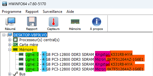 La section Mémoire permet de voir la mémoire vive installée sur la carte-mère.