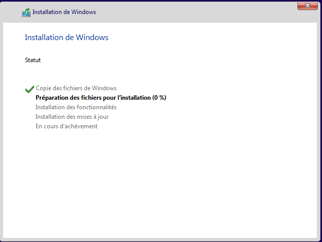 Cette étape peut prendre plusieurs minutes en fonction de la rapidité de la clé USB et du disque interne.