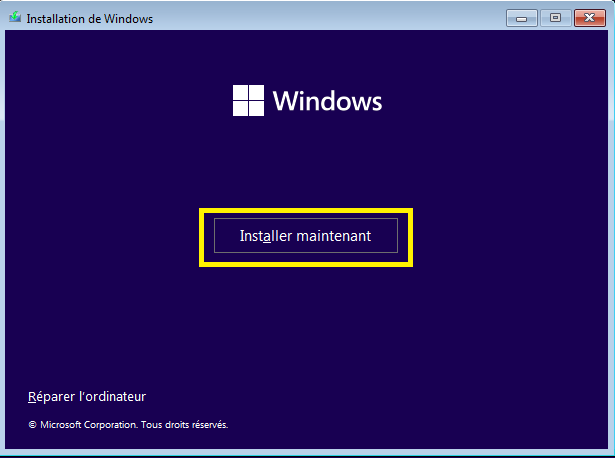 Veuillez démarrer le programme d'installation de Windows à partir du ISO.