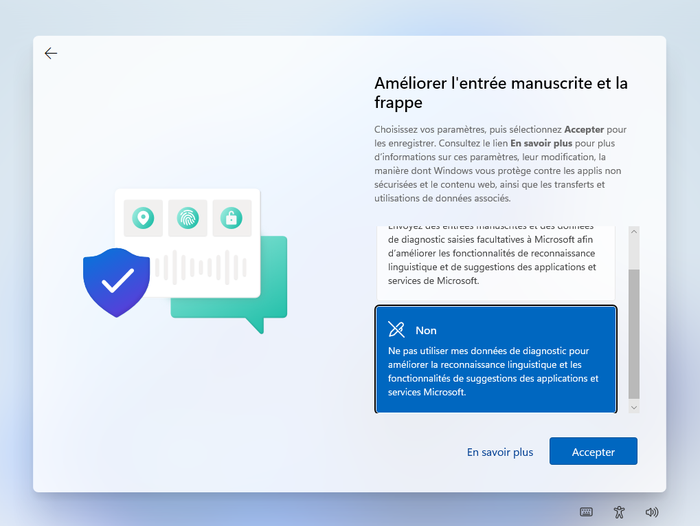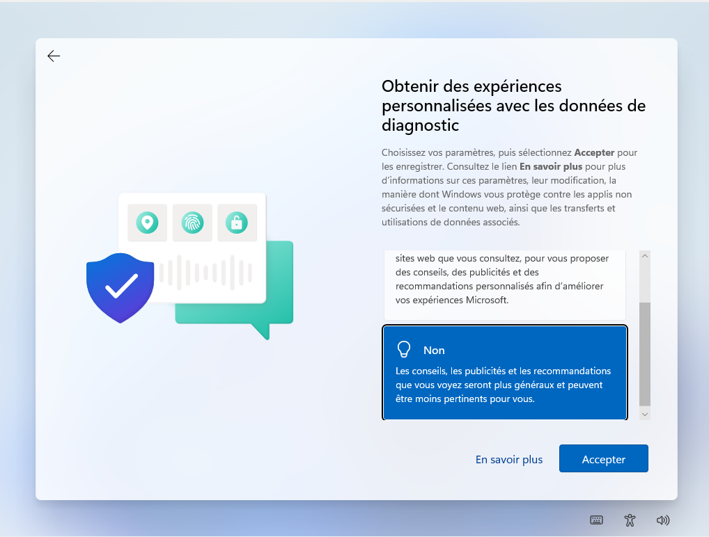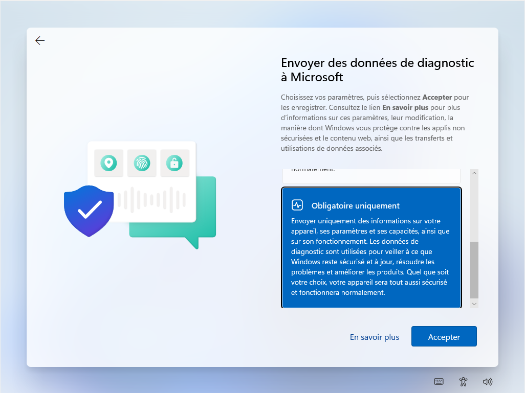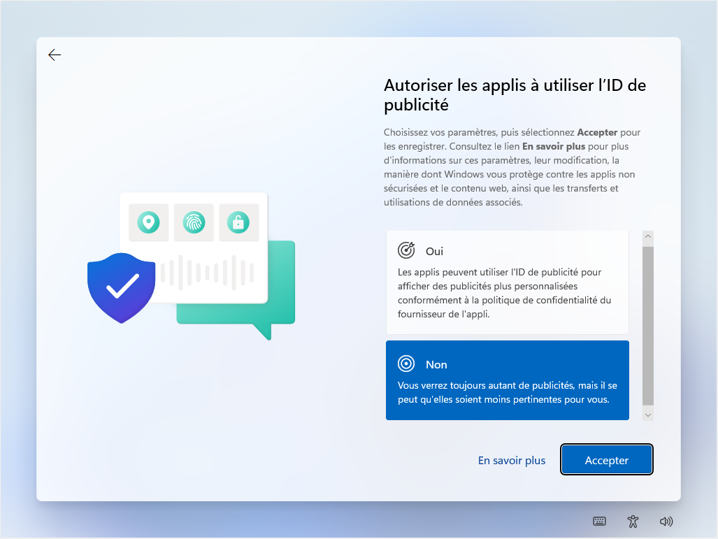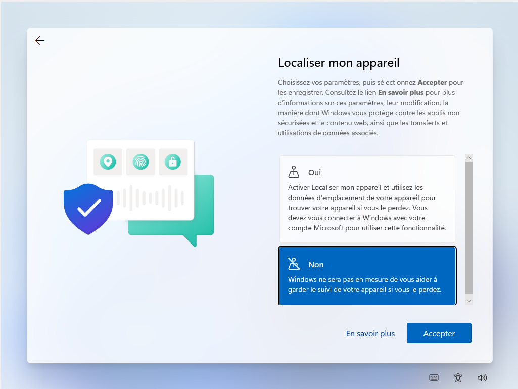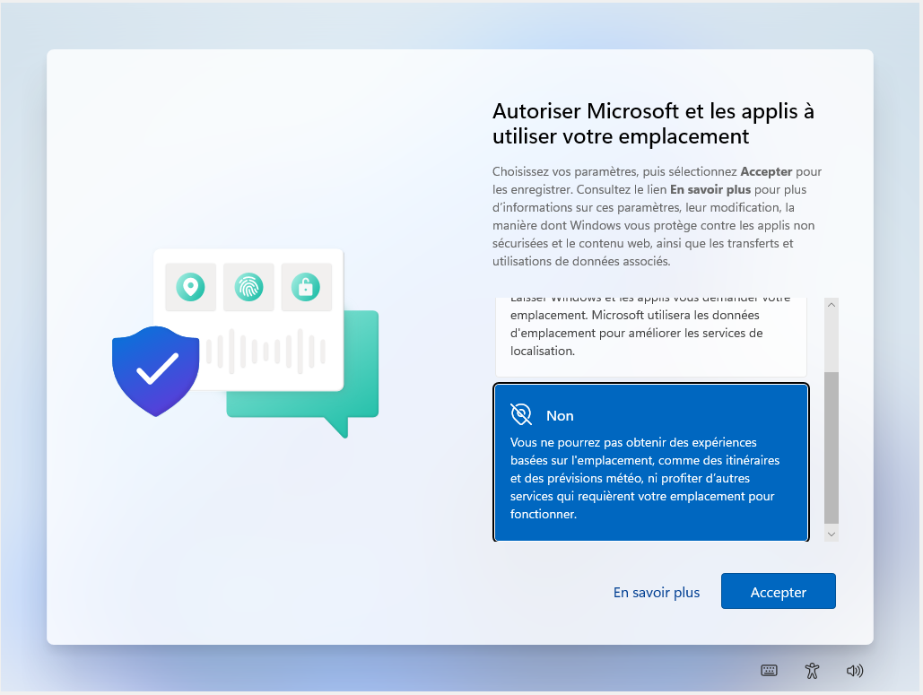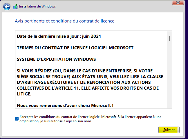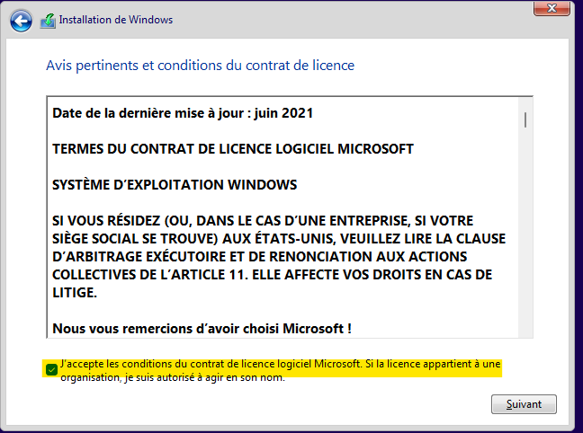 Il faut accepter le contrat d'utilisation de Windows avant de l'installer.