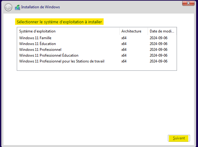 Voici la procédure d'installation pour installer la version 24H2 de Windows 11.