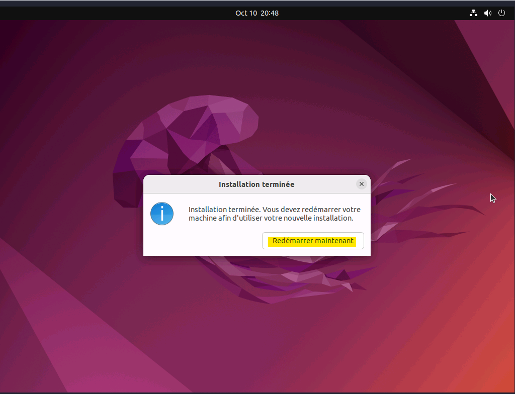 Appuyez sur le bouton Redémarrer maintenant pour finaliser l'installation.
