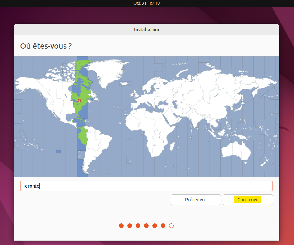 Sélectionnez la ville la plus proche de votre secteur. Pour le Québec, la ville de Toronto est suggérée. Appuyez sur le bouton Continuer.
