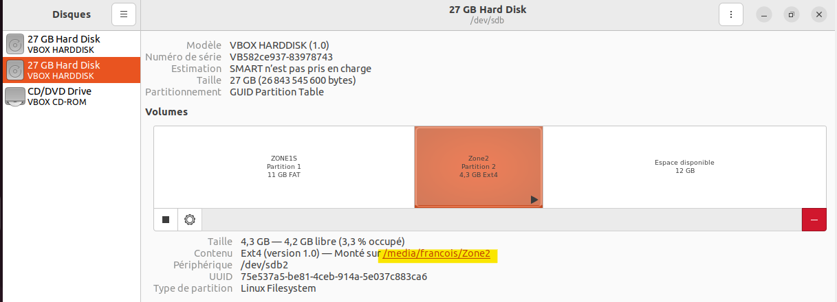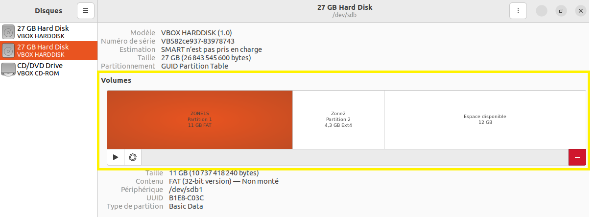 Dans l'exemple ci-dessous, c'est la partition Zone2 qui est sélectionnée.