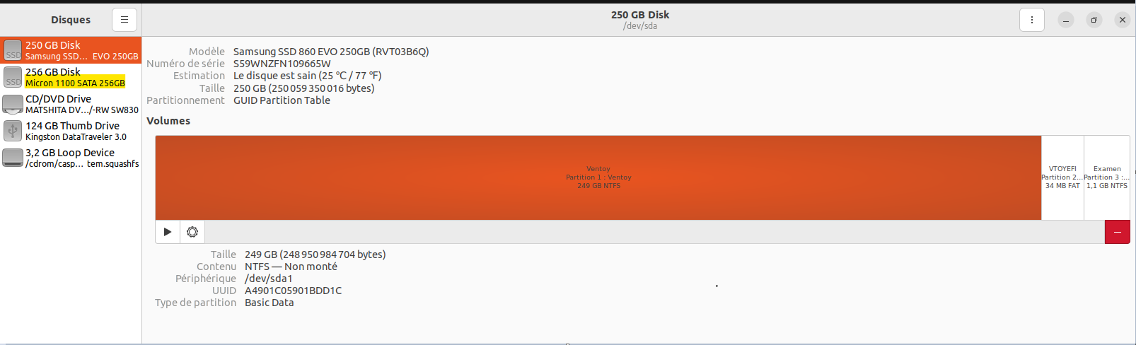 Pour faire des actions sur les unités de stockage, il est possible que seulement l'identifiant système soit affiché dans le logiciel.