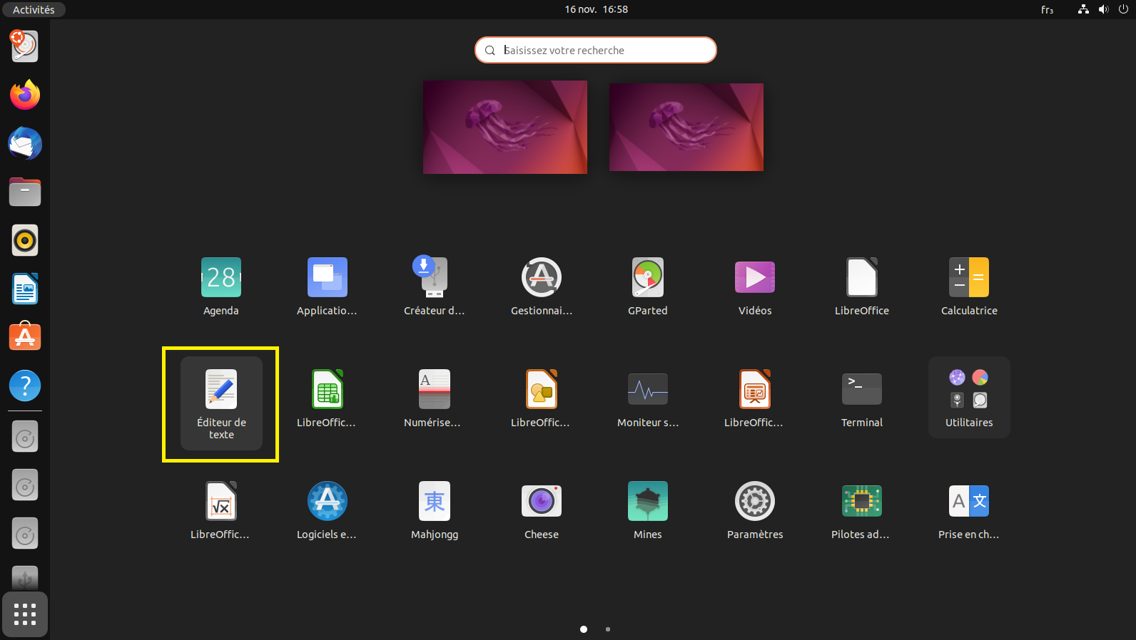 Dans le menu, sélectionnez l'application Éditeur de texte.