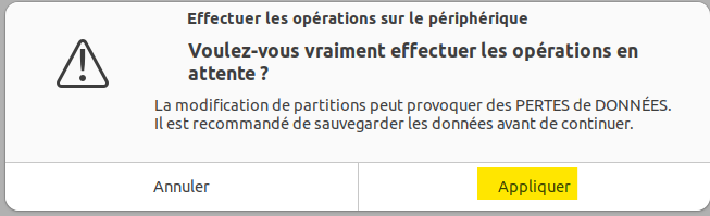Appuyez sur le bouton Appliquer pour enregistrer les partitions sur l'unité de stockage.