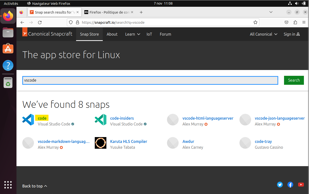 Allez sur le site snapcraft.io.