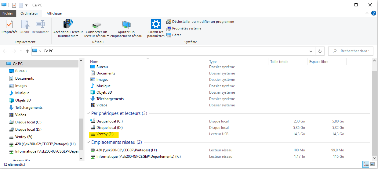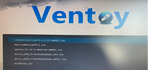 Ventoy est un logiciel qui permet de créer une unité de stockage démarrable avec plusieurs images.