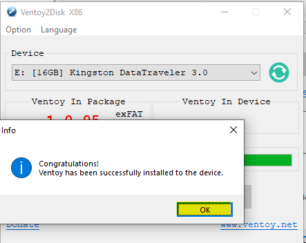 AvertissementSi la clé contient déjà Ventoy, il y aura une fenêtre de confirmation additionnelle.