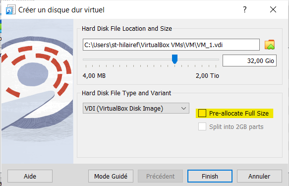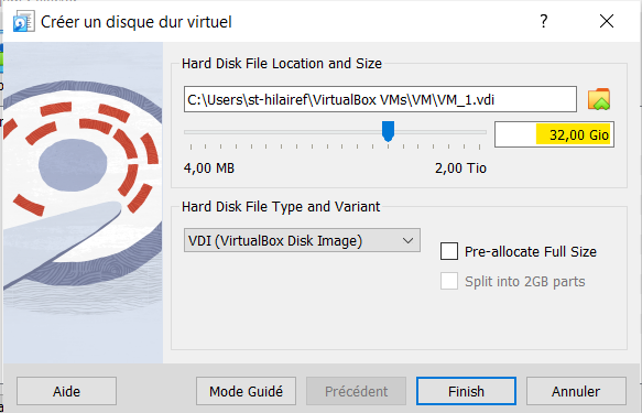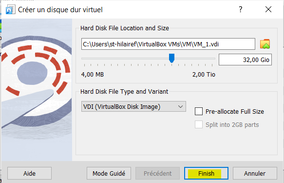 AvertissementLe format VDI est le format propriétaire de VirtualBox