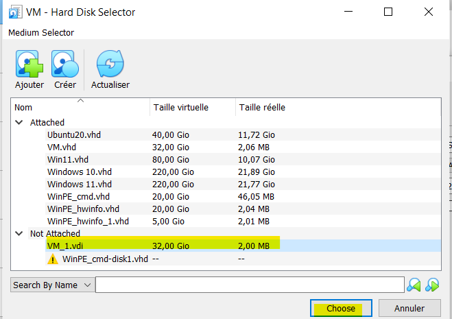 Sélectionnez le disque créé dans la liste. Il devrait être déjà sélectionné. Appuyez sur le bouton Choose.