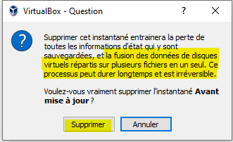 La fusion consiste a accepté toutes les modifications effectuées dans l'instantané. Les modifications seront intégrées à l'unité de stockage.
