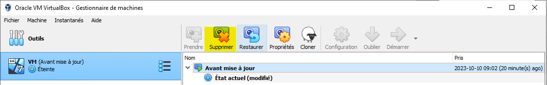 La machine virtuelle doit être arrêtée pour fusionner un instantané.