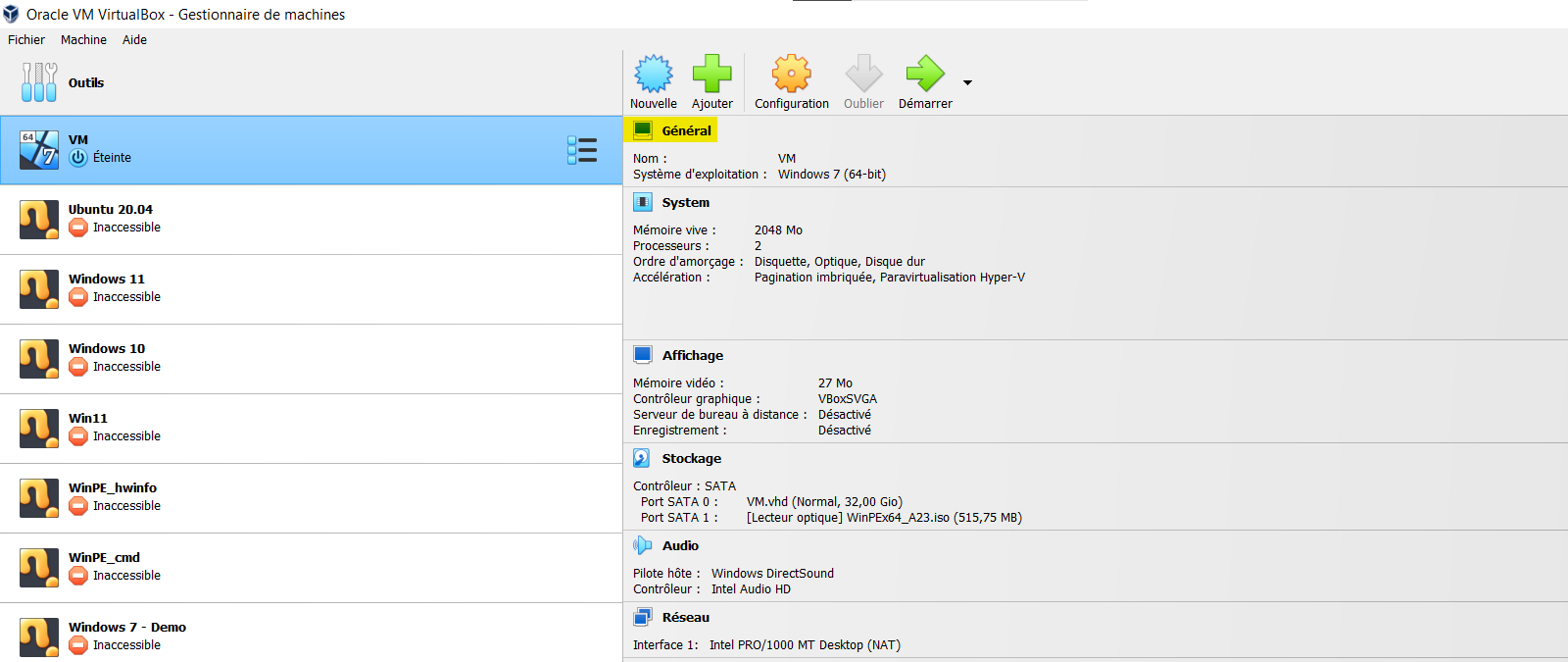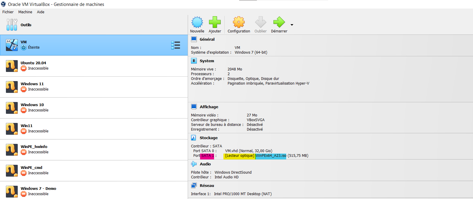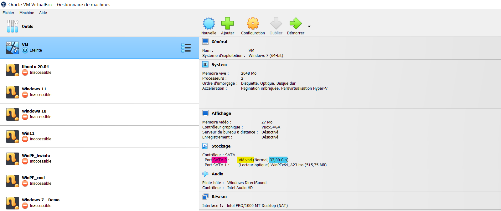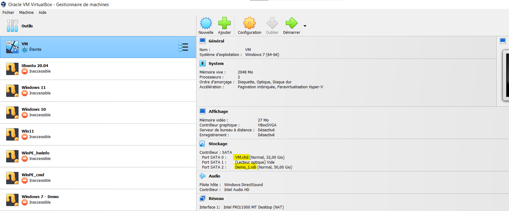 Il y a un disque en .vhd et un en .vdi.