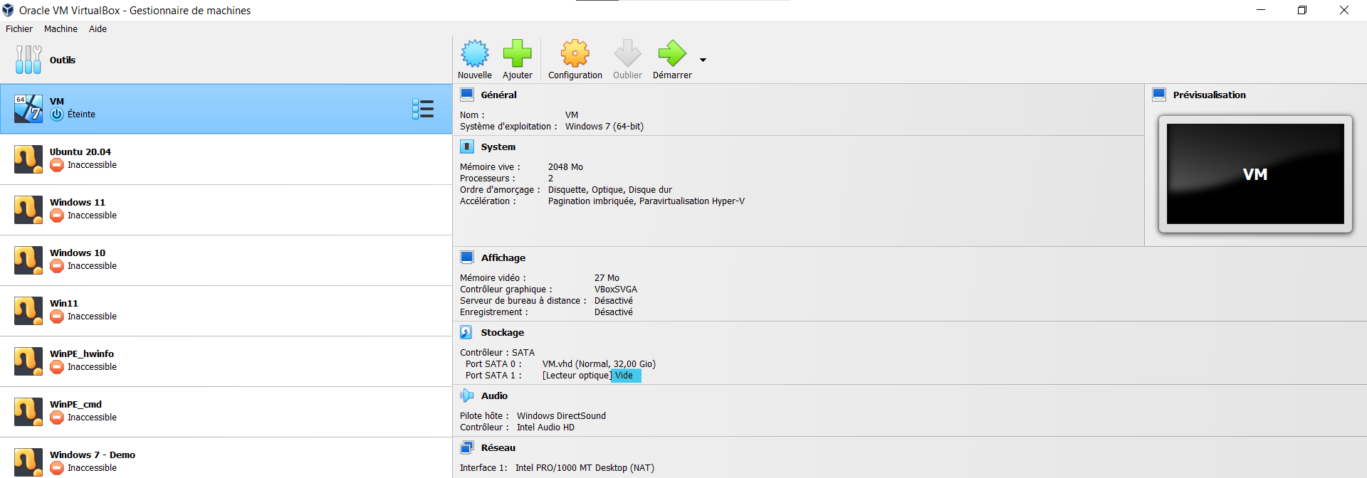 Identifier la configuration d'une VM