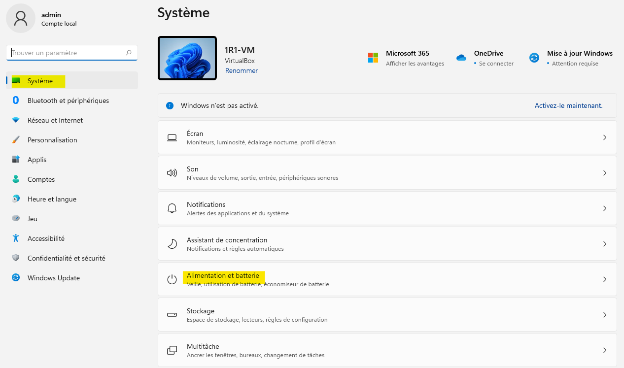 Dans Paramètres -> Système -> Alimentation et batterie.