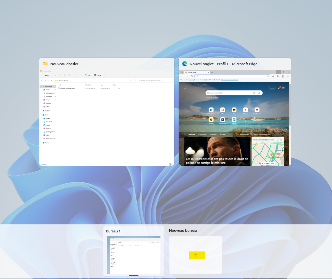 Pour accéder à la **vue des tâches **ou affichage des tâches, le raccourci Logo Windows + Tab permet d'y accéder directement.