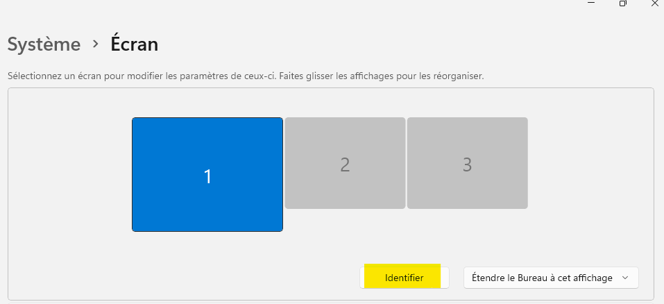 Windows affiche les écrans détectés avec un numéro. Chacun des numéros est l'assignation que Windows a donnée pour un écran physique.