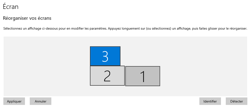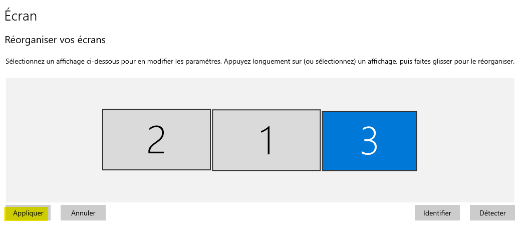 Il est possible de réorganiser l'ordre des écrans pour représenter l'emplacement physique. Le principe est le même pour Windows 10 et Windows 11.