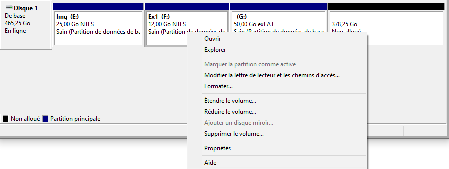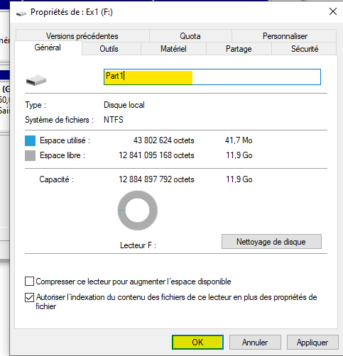 Il est possible de nommer une partition ou de modifier le nom après sa création.