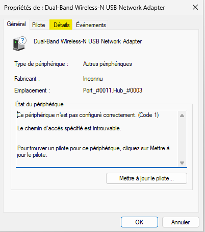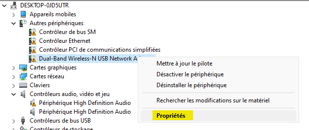 Effectuez un clic-droit sur le périphérique à identifier et sélectionnez Propriétés.