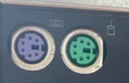Le port PS/2 permet de connecter un clavier (mauve) et une souris (vert).