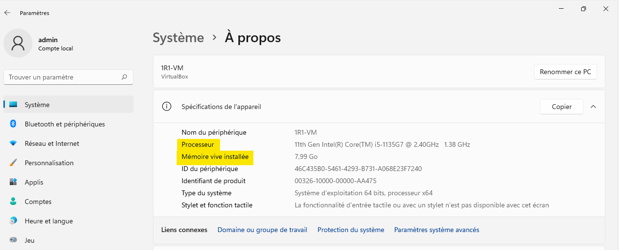 Pour accéder à la page à propos, il faut aller dans Paramètres -> Système -> À propos de.