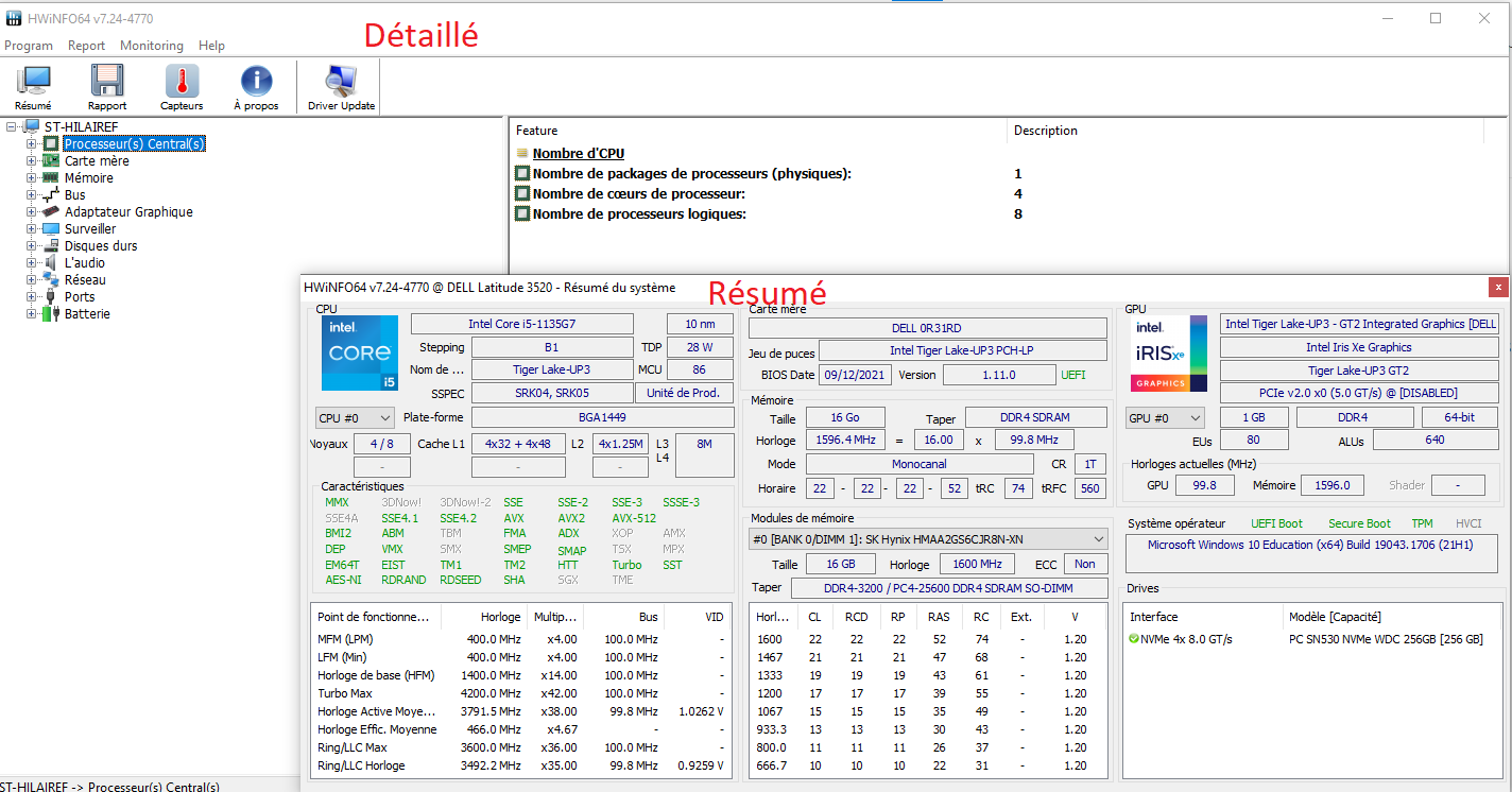 Dans ce cours, HWInfo, WMIC et le BIOS seront utilisés pour vérifier les configurations. L'explication de leur fonctionnement se retrouve dans la section Procédures - Utilitaires.