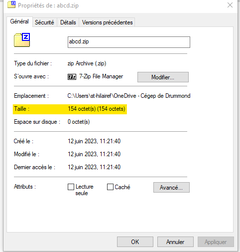 Le fichier compressé aura une taille de 154 octets !