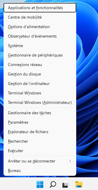 Il existe un menu avancé ou lien rapide dans Windows. Ce menu permet d'accéder à des éléments de configuration rapidement.